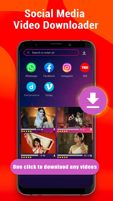 يوفر التطبيق ميزة تنزيل الفيديوهات من مختلف المواقع الشهيرة مباشرة إلى جهازك. هذه الميزة تمكنك من حفظ المحتوى المفضل لديك ومشاهدته لاحقًا دون الحاجة إلى اتصال بالإنترنت.